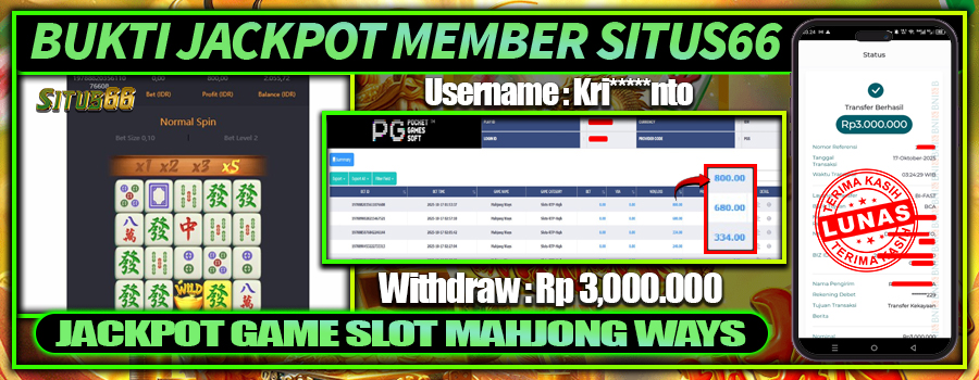 KEJAYAAN! MEMBER SITUS66 BERHASIL MERAIH KEMENANGAN GAME MAHJONG WAYS! 17 OCTOBER 2025