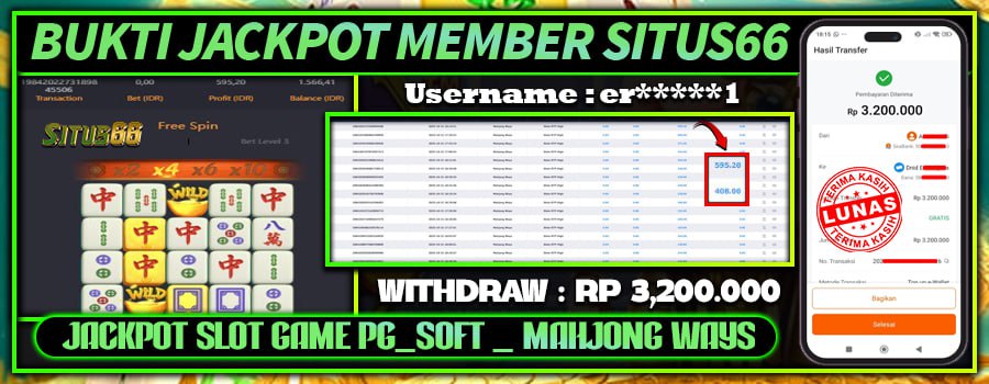 KEJAYAAN! MEMBER SITUS66 BERHASIL MERAIH KEMENANGAN PADA PERMAINAN MAHJONG WAYS! 01 NOVEMBER 2025