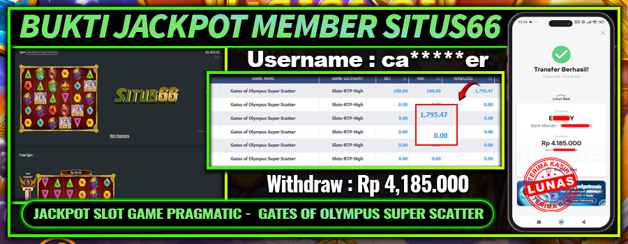 KEMENANGAN! MEMBER SITUS66 BERHASIL MERAIH JACKPOT GAME GATES OF OLYMPUS SUPER SCATTER! 31 DESEMBER 2025