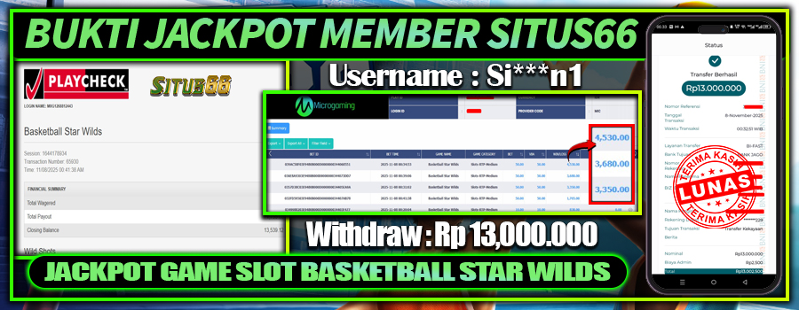 KEJAYAAN! MEMBER SITUS66 BERHASIL MERAIH KEMENANGAN GAME BASKETBALL STAR WILDS! 07 NOVEMBER 2025
