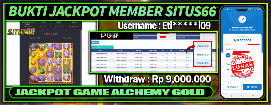 KEJAYAAN! MEMBER SITUS66 BERHASIL MERAIH JACKPOT GAME ALCHEMY GOLD! 05 NOVEMBER 2025