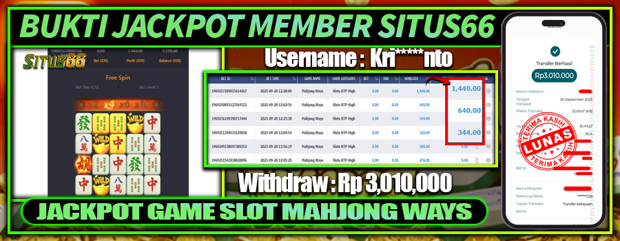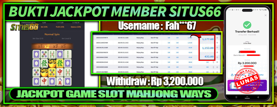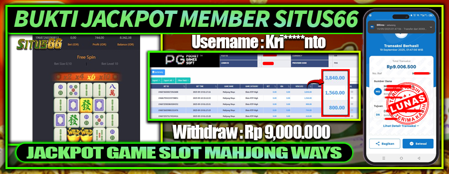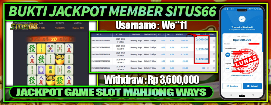 MENGESANKAN! MEMBER SITUS66 BERHASIL MERAIH JACKPOT GAME WILD BOUNTY SHOWDOWN! 24 SEPTEMBER 2025