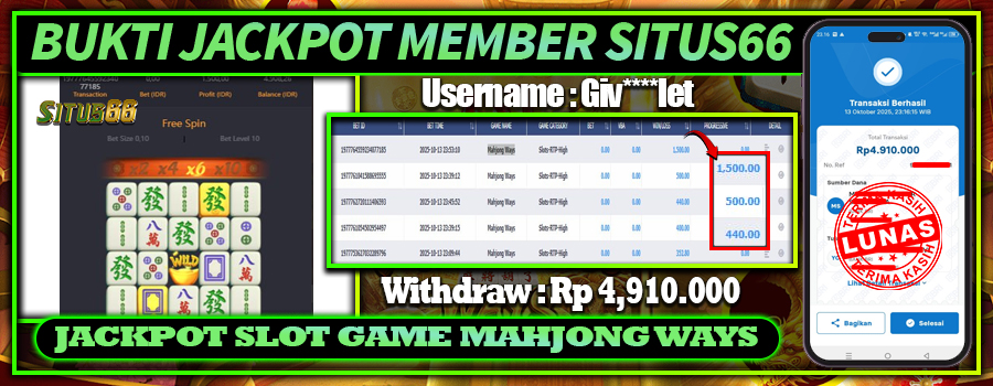Salah satu bukti nyata datang dari seorang pemain dengan User ID Giv****let yang baru saja memenangkan jackpot progresif senilai RP 4.910.000++. Bermain di situs slot yang memiliki sertifikasi resmi, ia berhasil mendapatkan kombinasi simbol terbaik yang mengaktifkan fitur free spin dan multiplier, melipatgandakan saldo kemenangannya secara signifikan.