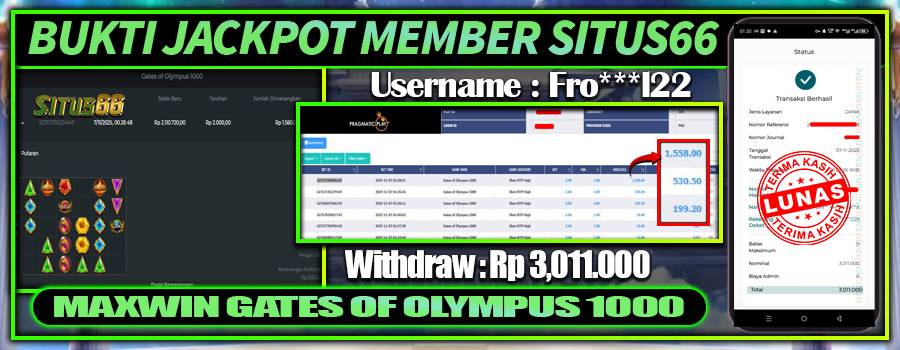 KEMENANGAN! MEMBER SITUS66 BERHASIL MERAIH MAXWIN GAME GATES of OLYMPUS 1000! 06 NOVEMBER 2025