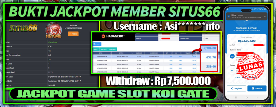 SITUS66 kembali menjadi saksi momen luar biasa ketika seorang pemain berhasil meraih kemenangan besar hanya bermodalkan keberuntungan dan sedikit keberanian! Dalam waktu singkat, taruhan kecil yang dipasang di salah satu game populer langsung meledak menjadi jackpot bernilai fantastis.