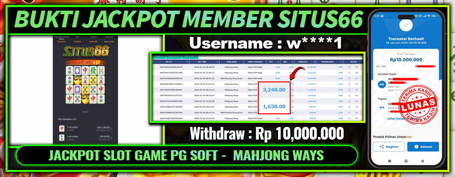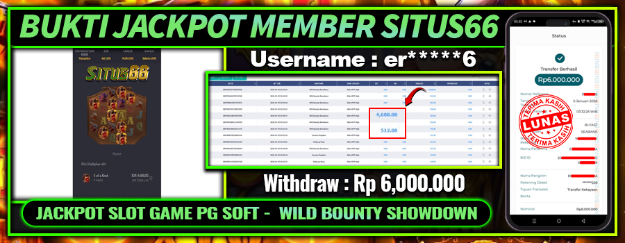 KEMENANGAN! MEMBER SITUS66 BERHASIL MERAIH JACKPOT GAME PG SOFT – WILD BOUNTY SHOWDOWN! 05 JANUARY 2026
