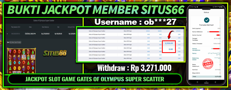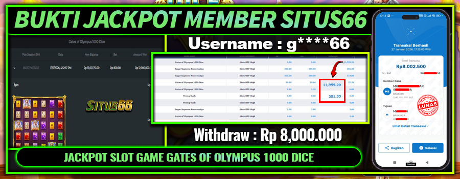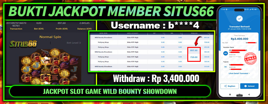 KEMENANGAN! MEMBER SITUS66 BERHASIL MERAIH JACKPOT GAME PG SOFT – WILD BOUNTY SHOWDOWN! 27 JANUARY 2026